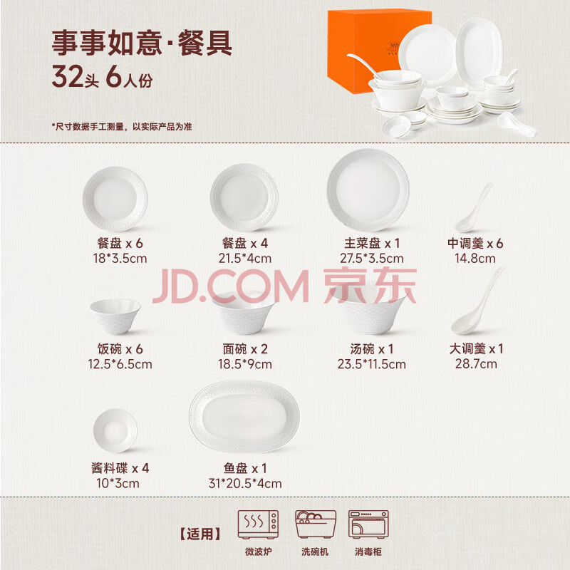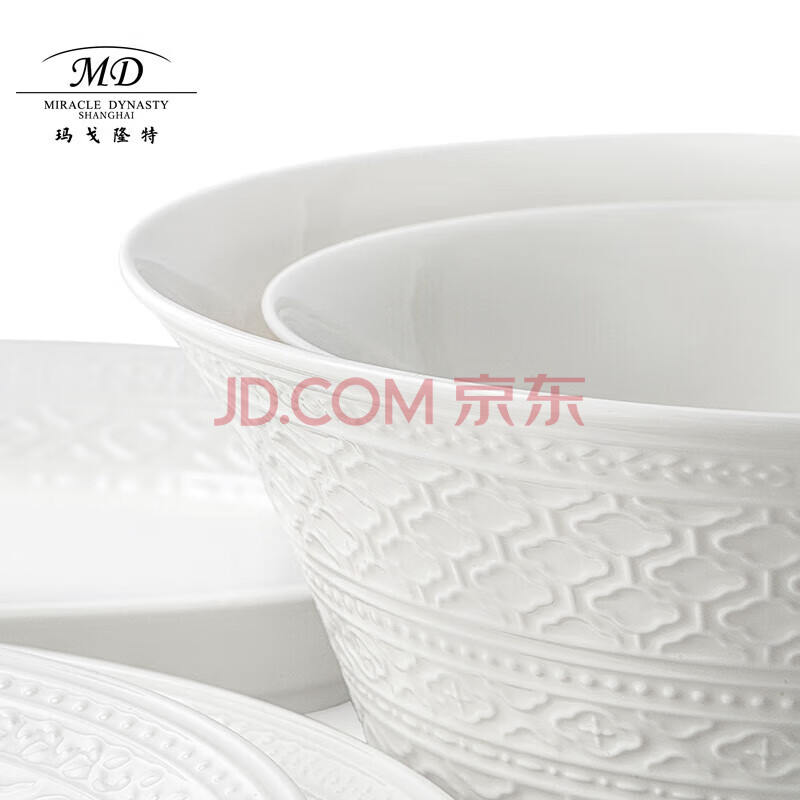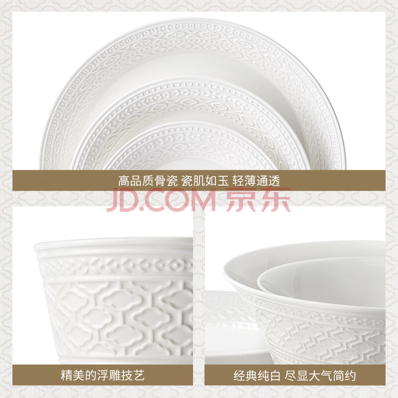 商品相册:玛戈隆特碗碟套装国瓷高端餐具纯白浮雕事事如意6人份32头第