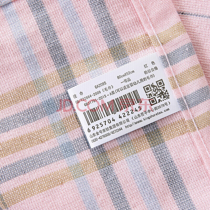 商品相册:金号A类纯棉枕头巾2条双层纱布成人枕巾一对2条装126g/条 52*80cm第1张/共4