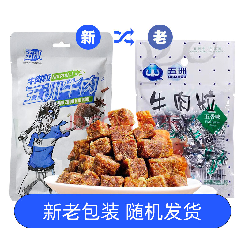 商品相册:五洲 五香牛肉粒60g 独立小包装量贩装 高蛋白休闲零食 新老包装随机第1张/共5