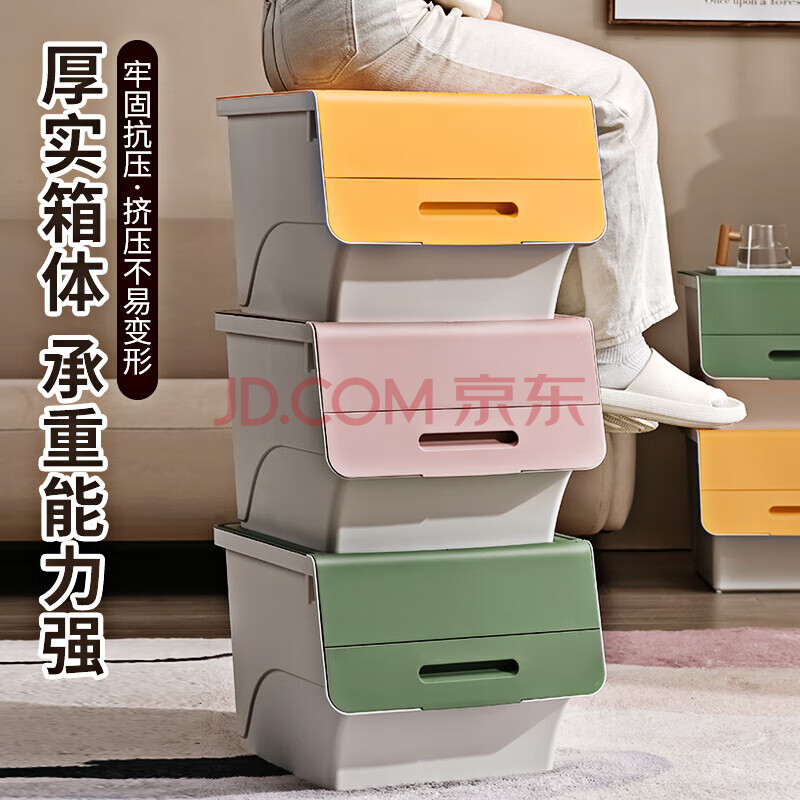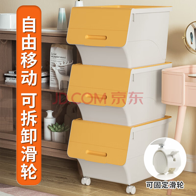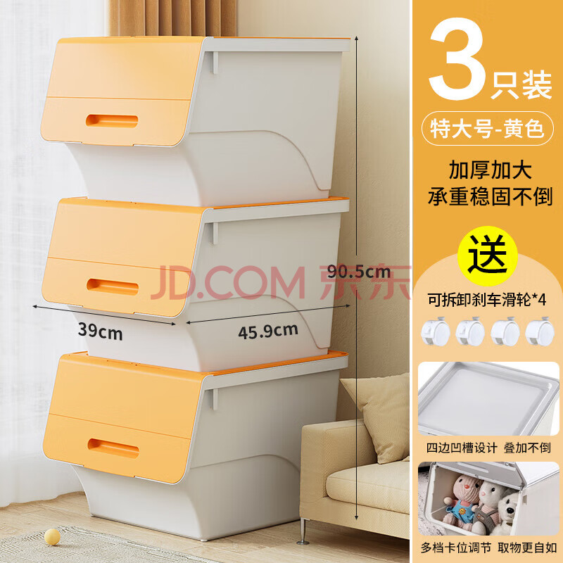 商品相册:JEKO&JEKO前开翻盖玩具收纳箱儿童衣服收纳盒整理箱零食储物箱34L3只装黄色第