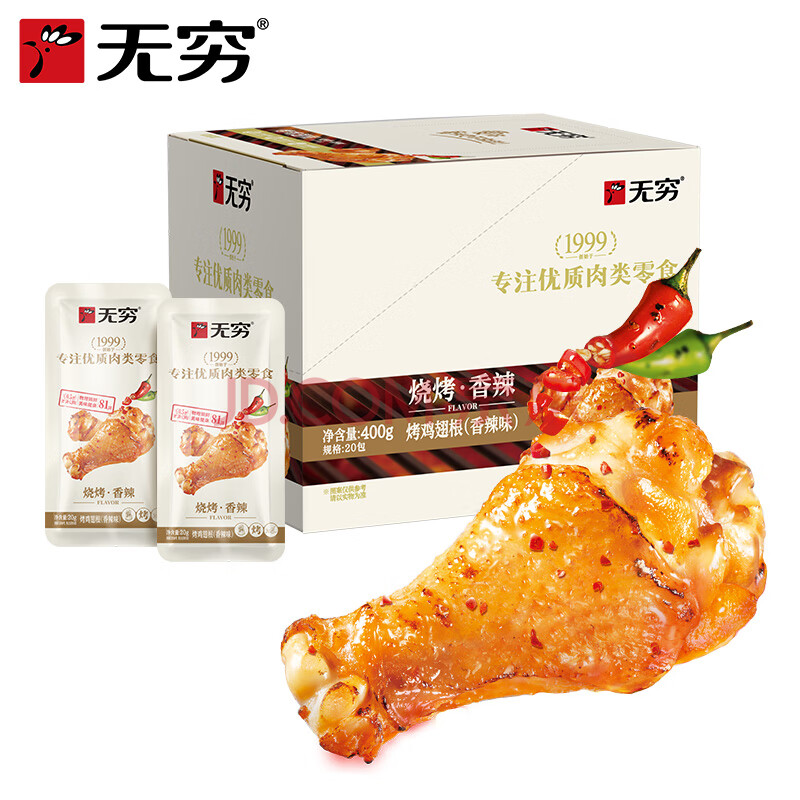 商品相册:无穷烤鸡小腿 400g香辣烤鸡翅根办公室休闲小零食即食熟食小吃第