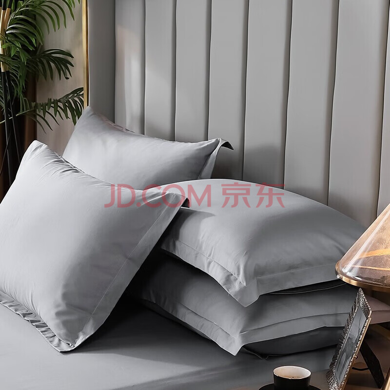 商品相册:洁丽雅(Grace)7A抗菌枕套一对长绒棉纯色家用枕头套枕芯套 爵士灰48*74cm 一对第