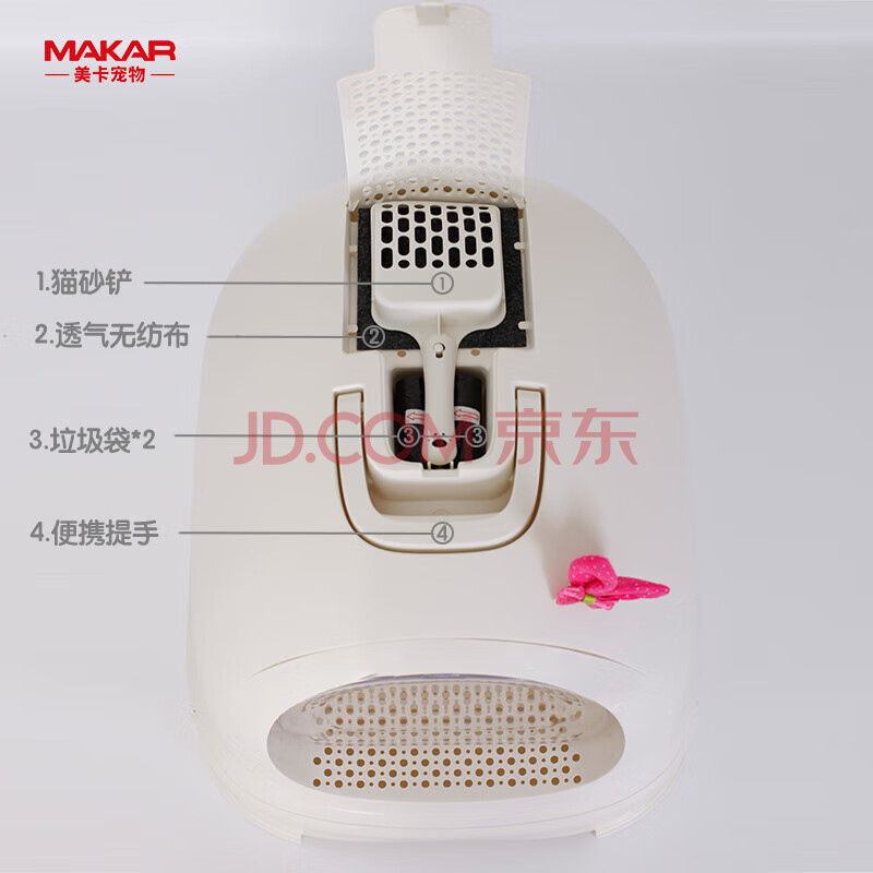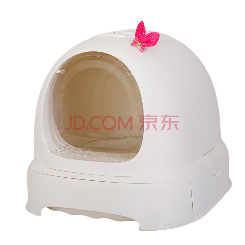 商品相册:美卡经典机器猫全封闭猫砂盆 大号防外溅隔臭大空间猫厕所便盆奶白色第