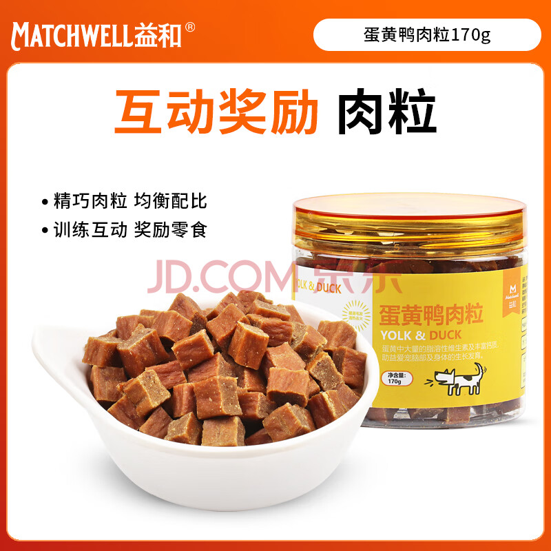 商品相册:MATCHWELL益和 宠物零食 狗零食鸭肉粒 狗零食 蛋黄鸭肉粒170g第