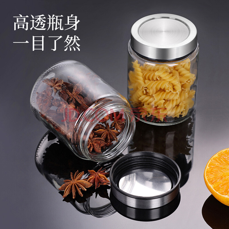 商品相册:拜杰密封调料罐调料盒玻璃调料瓶套装厨房盐罐香料防潮不锈钢收纳盒第