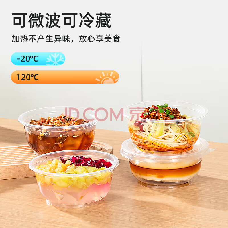 商品相册:特美居(temeiju)一次性饭盒圆形餐盒野餐打包盒透明汤碗冰粉碗不带盖50只装360型第