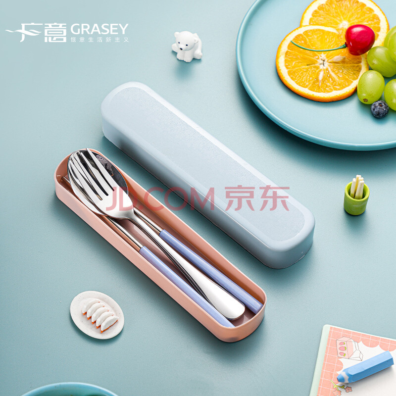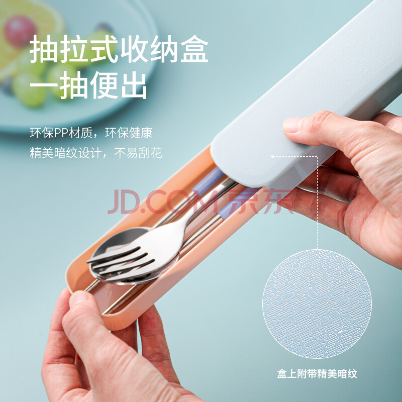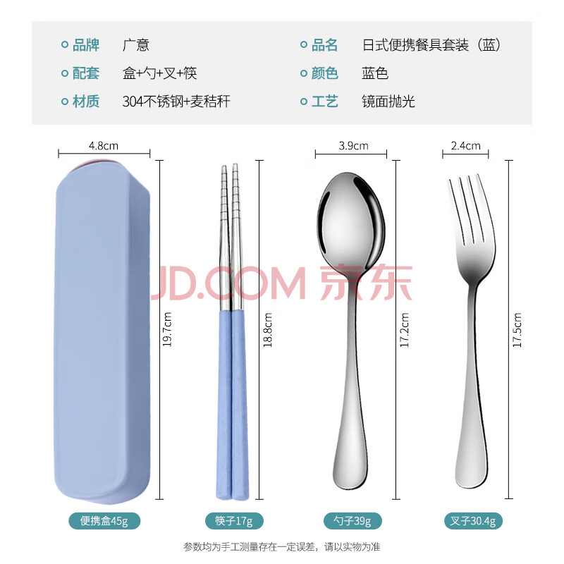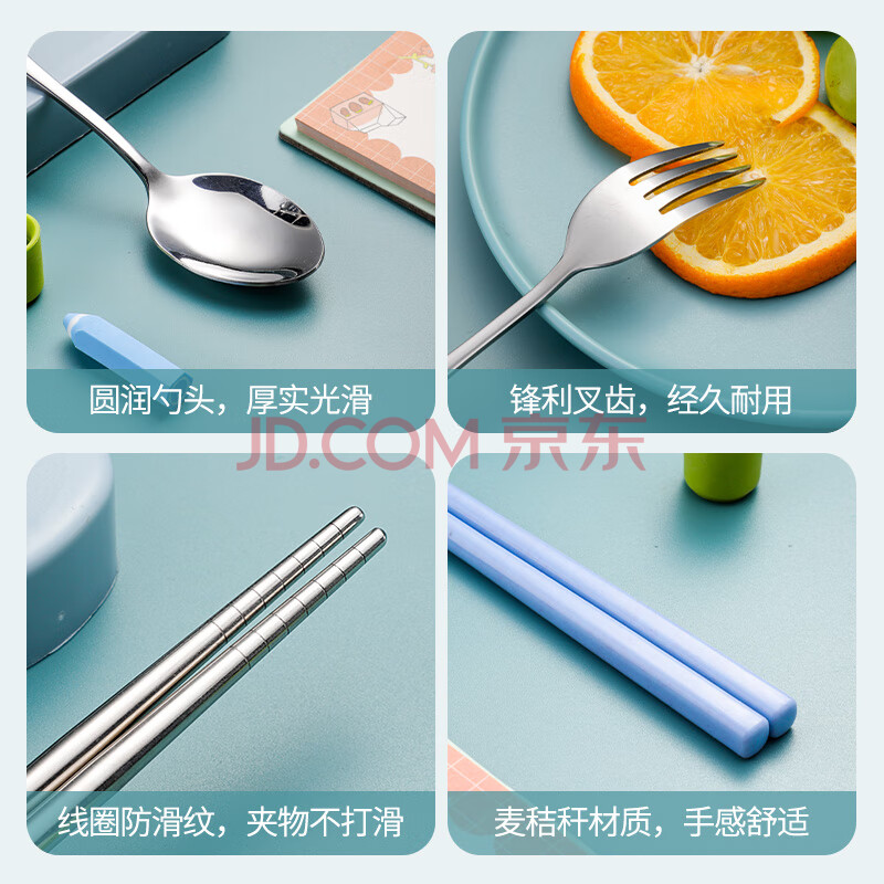 商品相册:广意不锈钢筷子单人套装学生旅行筷子勺子叉子盒便携餐具四件套GY7501第