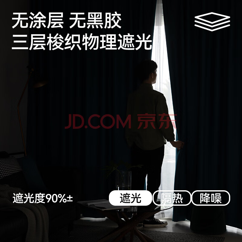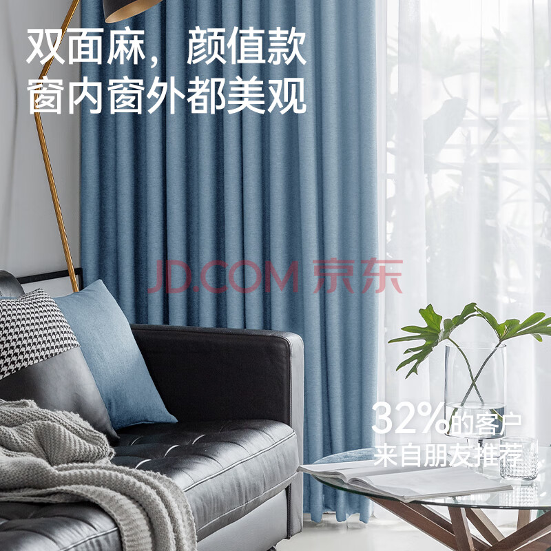 商品相册:金蝉现代简约日式成品窗帘布客厅卧室全遮光窗帘打孔式星蓝色 250*245第