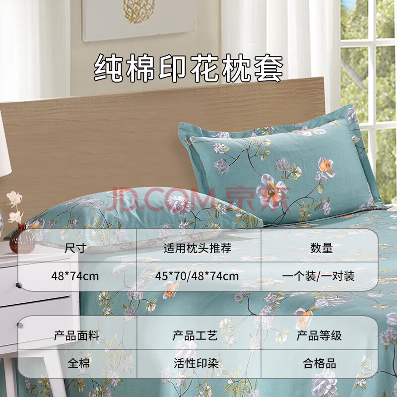 商品相册:艾薇 A类枕头套纯棉家用全棉单人枕套一对枕芯套 清馨花园 48*74cm第1张/共4