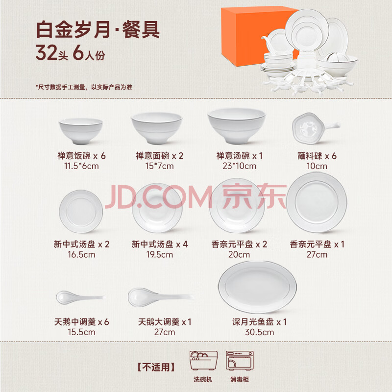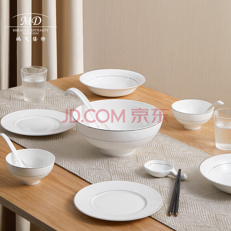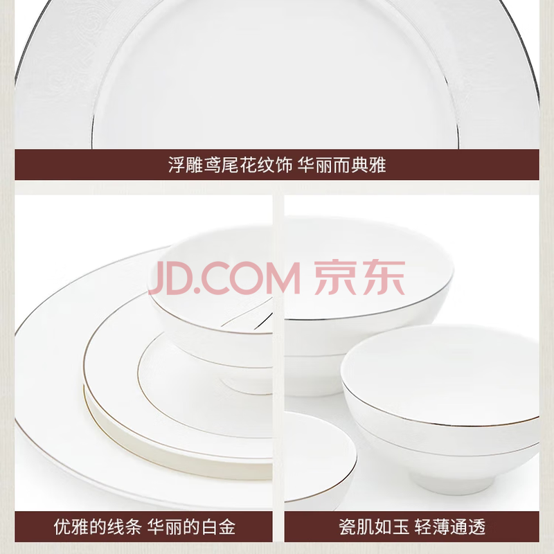 商品相册:玛戈隆特 餐具碗碟套装骨瓷餐具轻奢家用礼品礼盒包装白金岁月6人份32头第1张/共4