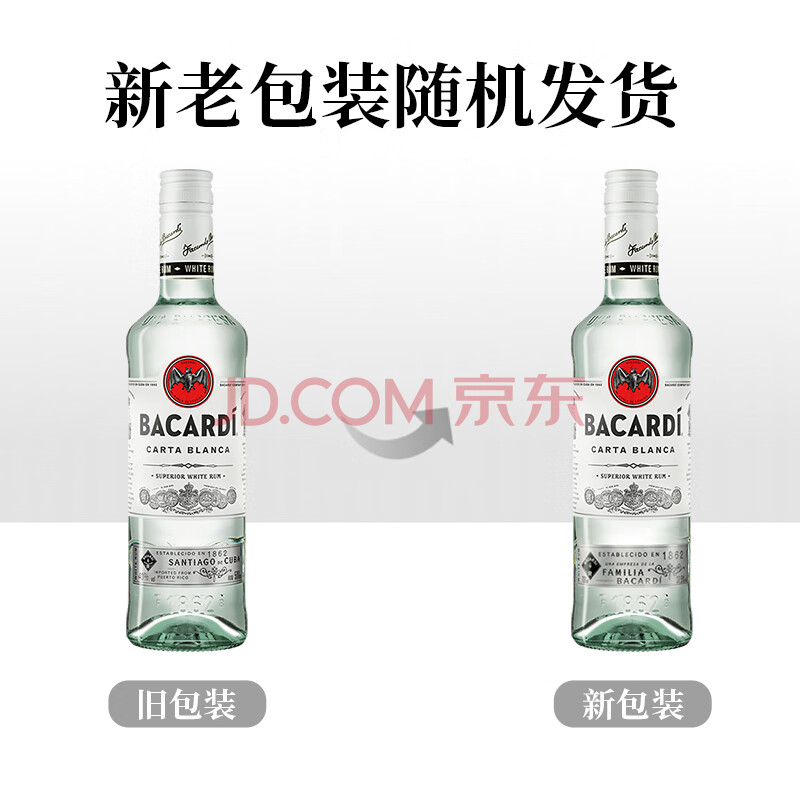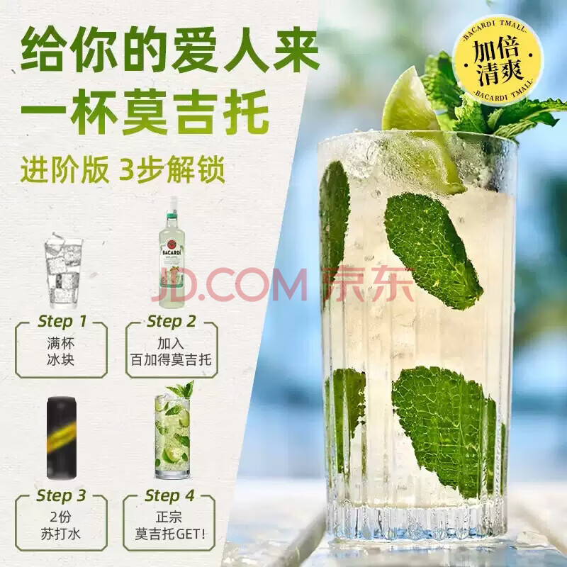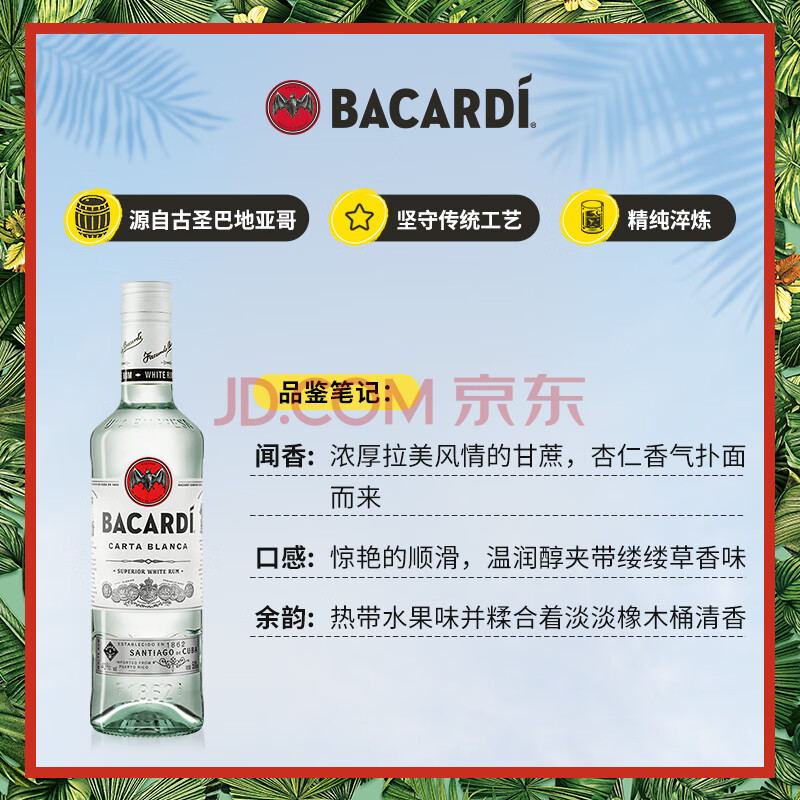 商品相册:百加得(Bacardi)白朗姆酒 洋酒 莫吉托 鸡尾酒 基酒调酒 500ml 送礼第