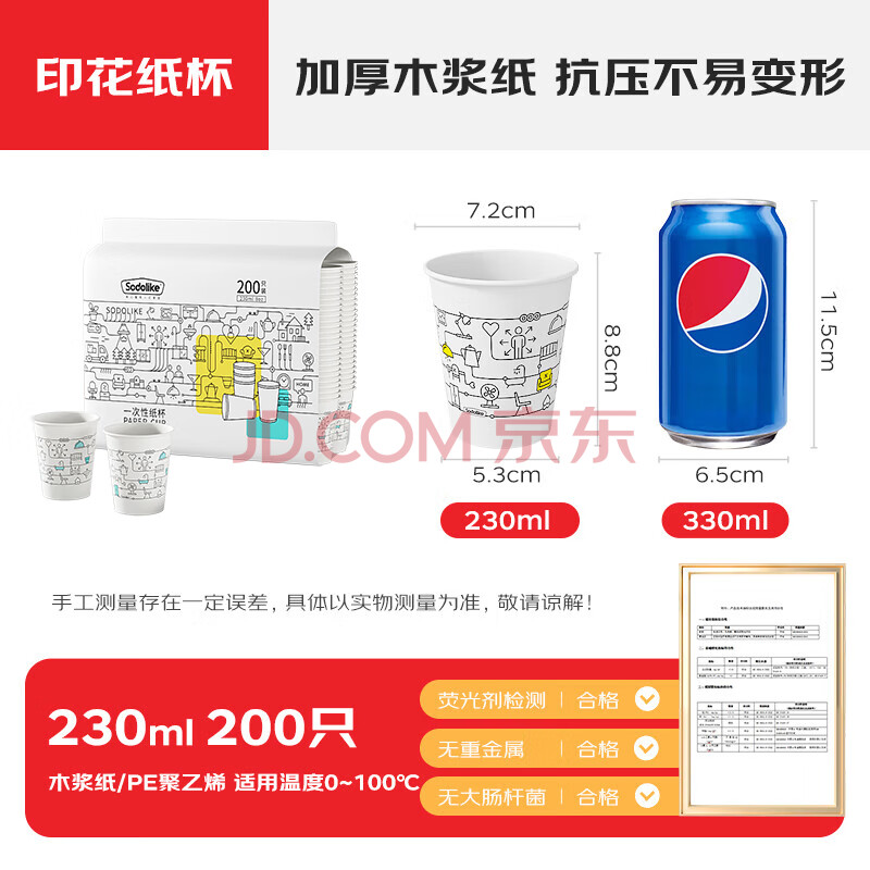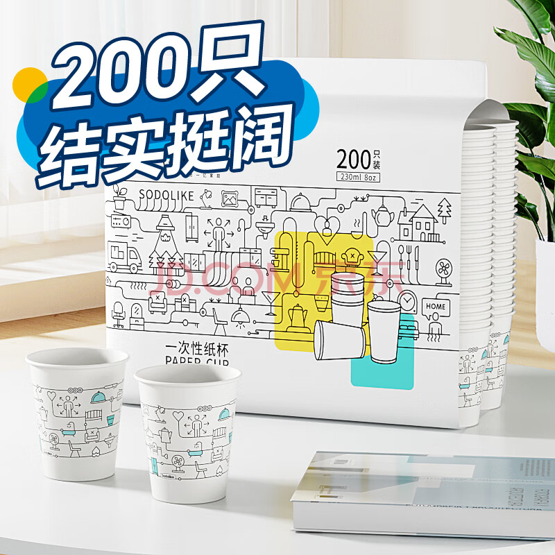 商品相册:Sodolike尚岛 一次性纸杯 200只装 8盎司 环保加厚型纸杯 商务办公第