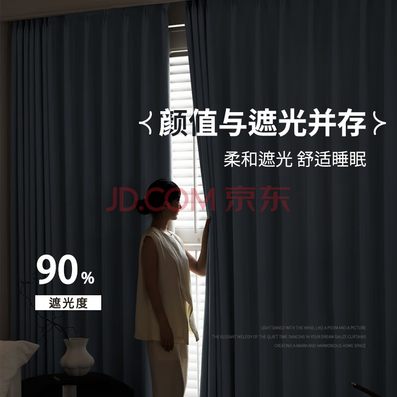 商品相册:米华简约成品遮光窗帘布挂钩式 罗曼尼烟灰蓝色 1.8米宽*2.4米高 一片第1张/共9