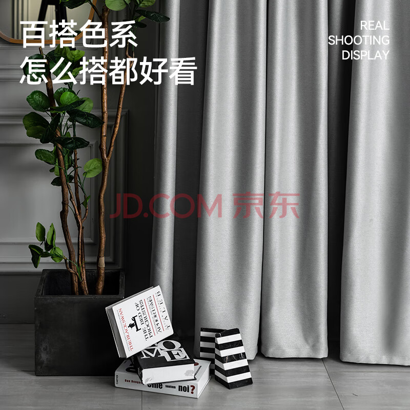 商品相册:金蝉现代简约日式成品窗帘布客厅卧室全遮光窗帘打孔式铅灰色 130*180第