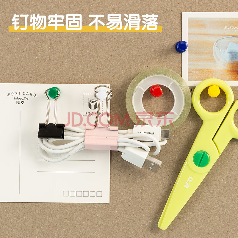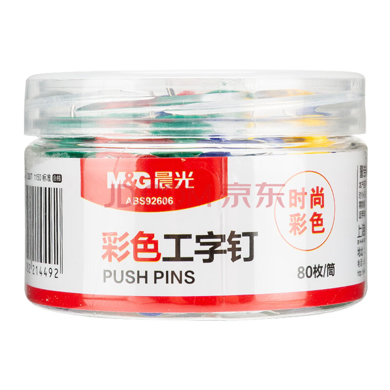 商品相册:晨光(M&G)文具彩色图钉 软木画板按钉 办公工字钉 大头钉 80枚/筒ABS92606开学必备第