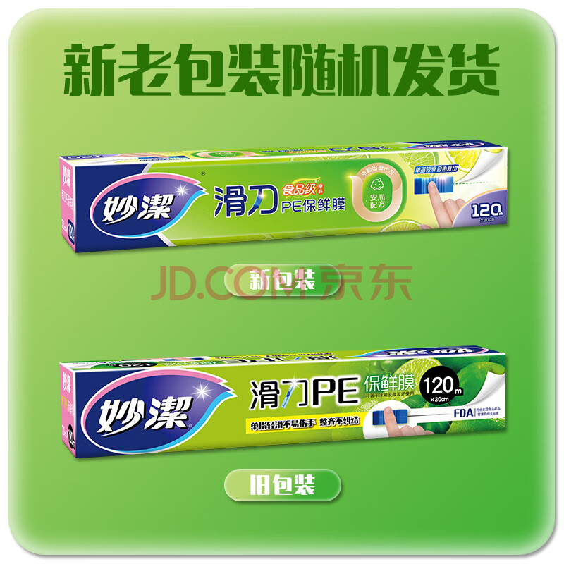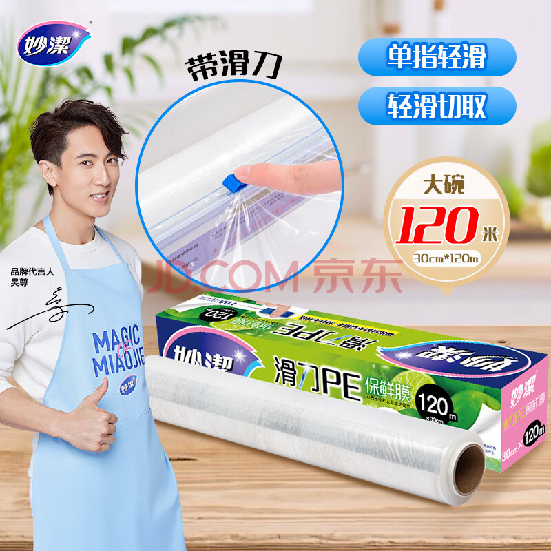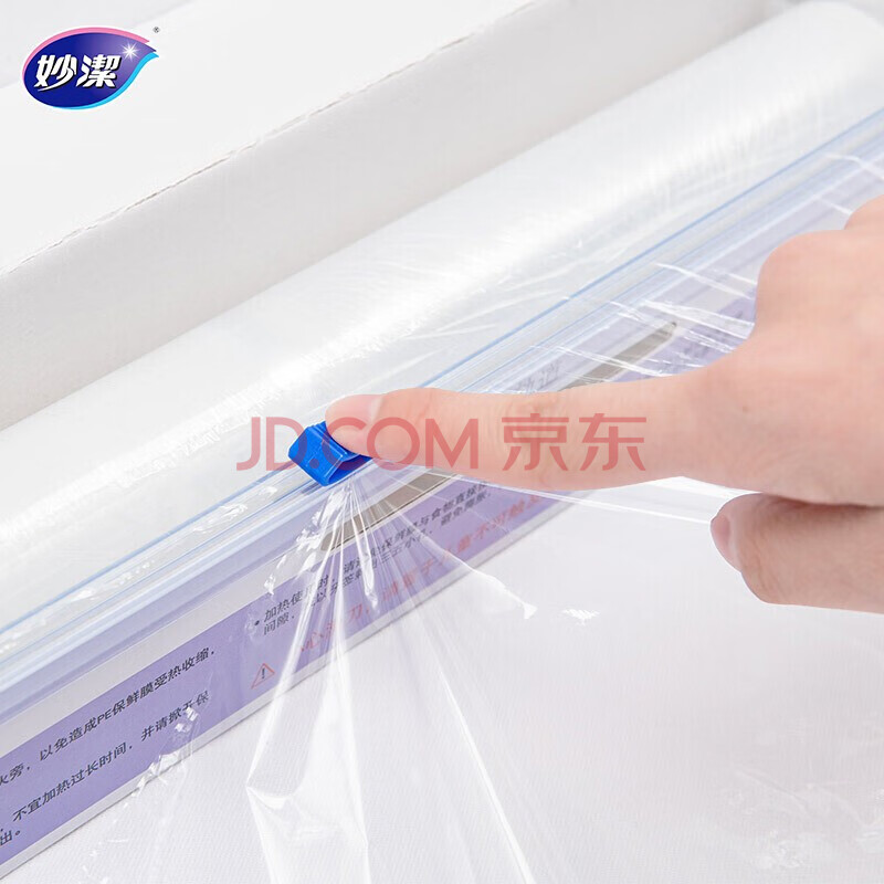 商品相册:妙洁 滑刀保鲜膜 大号*120米 冰箱微波炉食品级带切割盒第
