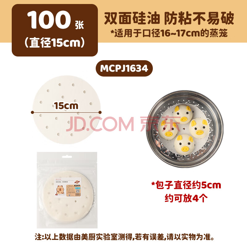 商品相册:美厨(maxcook)蒸笼纸包子垫纸蒸包子纸笼屉纸一次性100张 直径15cm MCPJ1634第