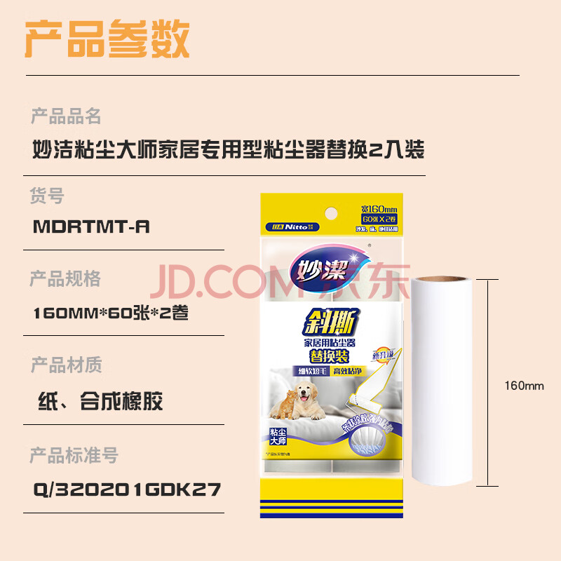 商品相册:妙洁粘尘大师家居专用型粘尘器替换装16cm*120撕 粘毛器 新升级为斜撕第