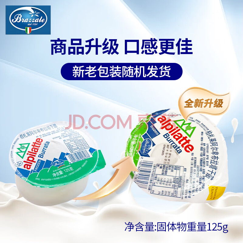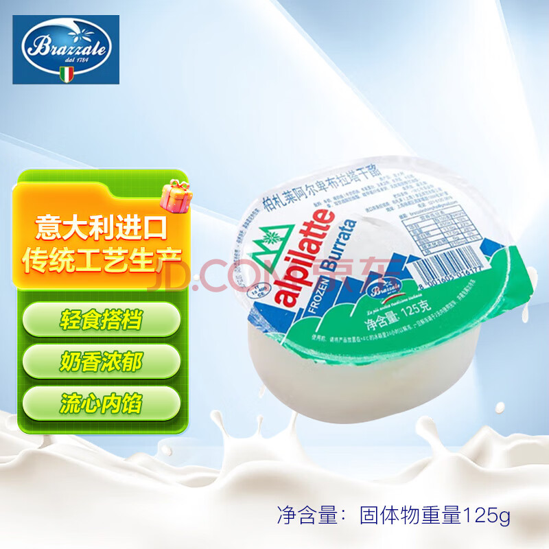 商品相册:柏札莱阿尔卑 布拉塔奶酪270g(固形物不低于125g) 意大利原装进口 轻食 柏扎莱第