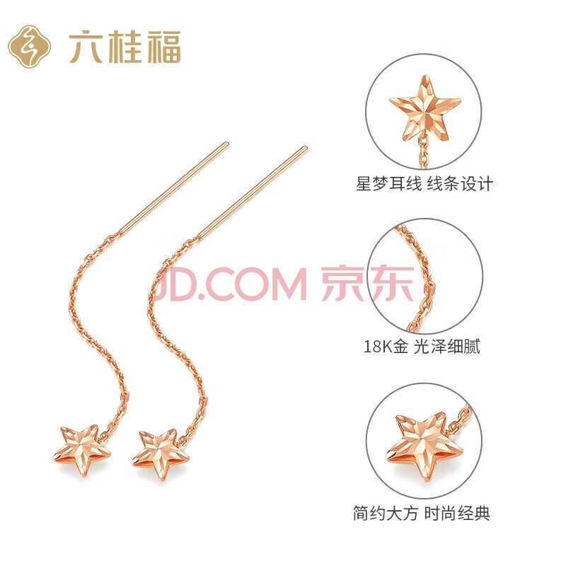 商品相册:六桂福珠宝 18K玫瑰金耳饰 星梦 耳环耳钉耳坠耳线女 FE0202第