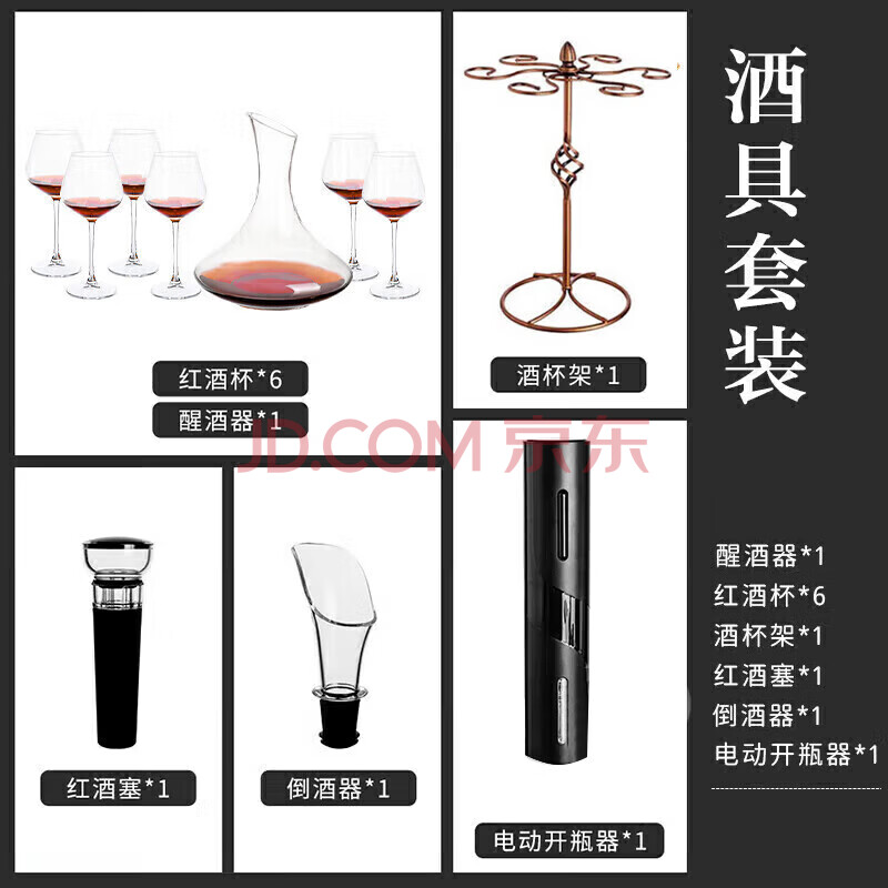 商品相册:青苹果无铅水晶玻璃红酒杯11件套装 勃艮第高脚杯醒酒器开瓶器杯架第