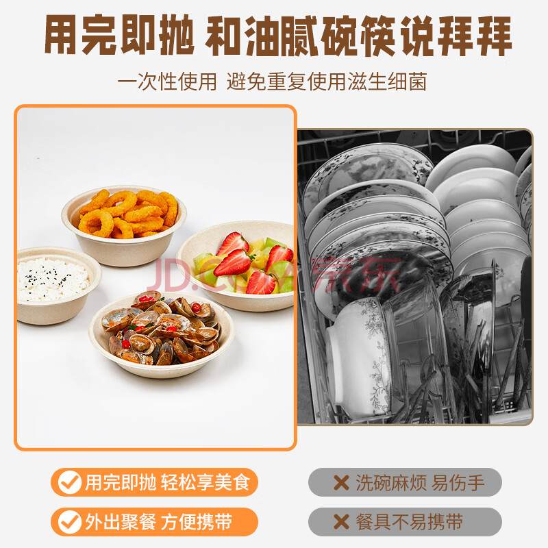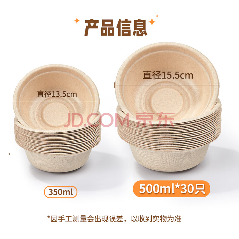 商品相册:SHUANG YU 一次性纸碗本色500ml*30只芋泥冰碗可降解汤饭碗圆碗烧烤野餐具第