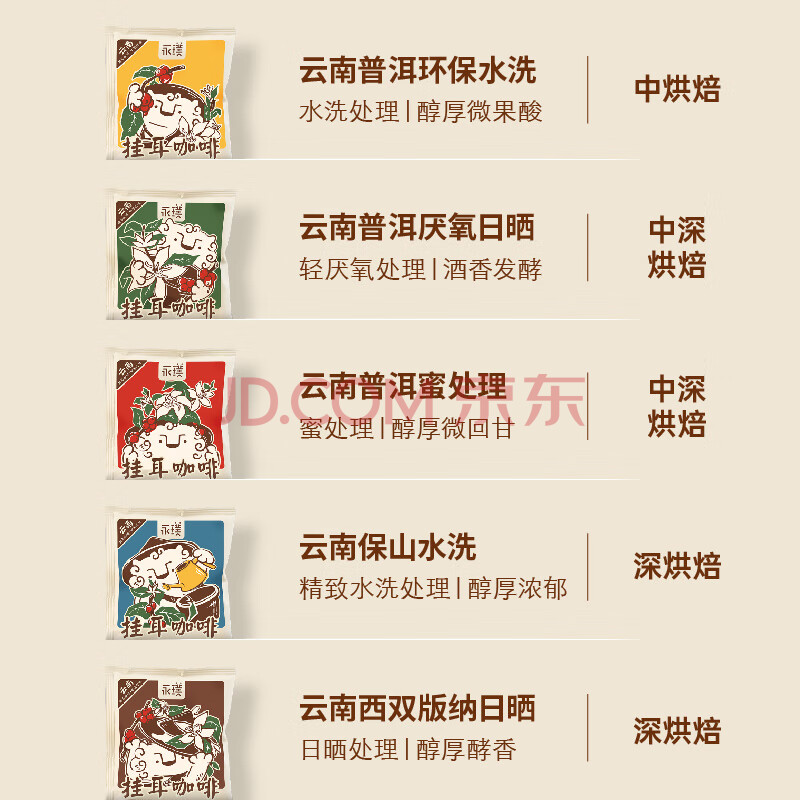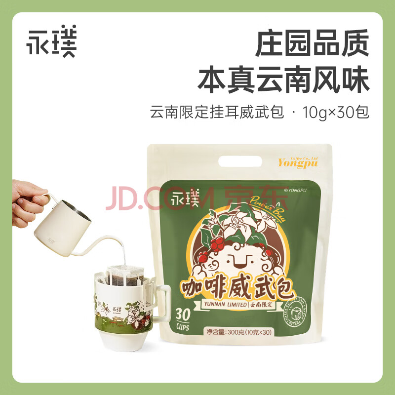 商品相册:永璞挂耳咖啡速溶无糖浓缩焙炒咖啡豆云南威武包混合装10g*30包第