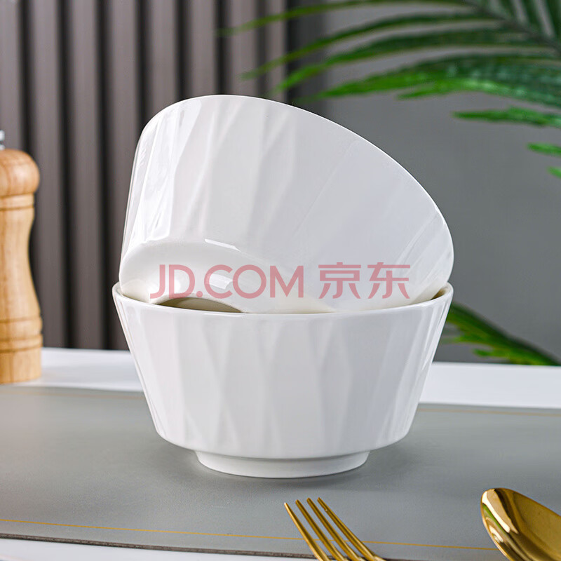 商品相册:洁雅杰陶瓷面碗家用大号白瓷碗釉下彩6英寸大碗 米饭碗4只装白色琉璃第