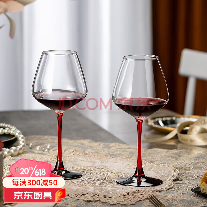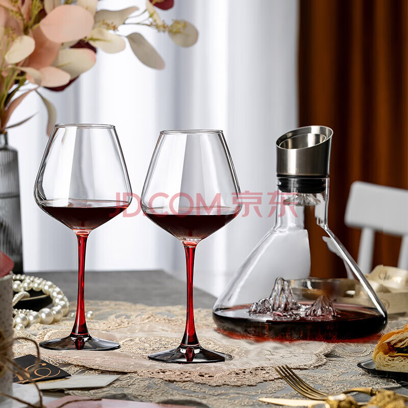 商品相册:格娜斯(CRISTALGLASS)勃艮第红酒杯套装家用大号水晶玻璃葡萄酒高脚酒具460ml两只红杆第