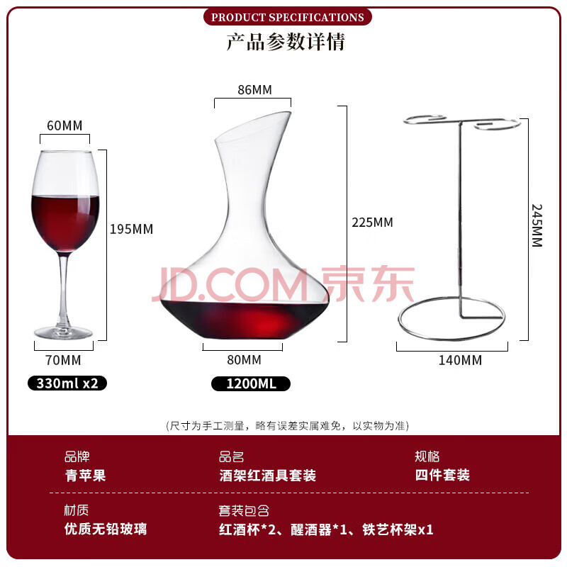 商品相册:青苹果红酒杯高脚杯葡萄酒杯红酒杯醒酒器4件套 红酒杯*2+醒酒器+杯架第