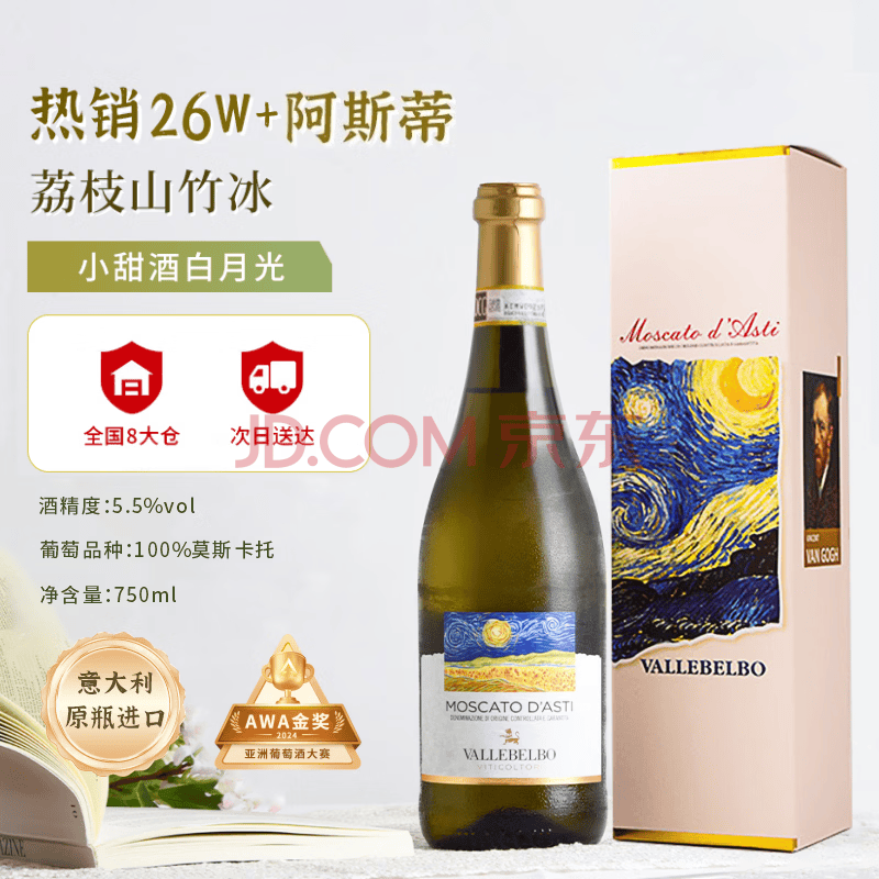 商品相册:星空莫斯卡托意大利起泡酒莫斯卡托阿斯蒂梵高星空甜白葡萄酒750ml过节送礼第