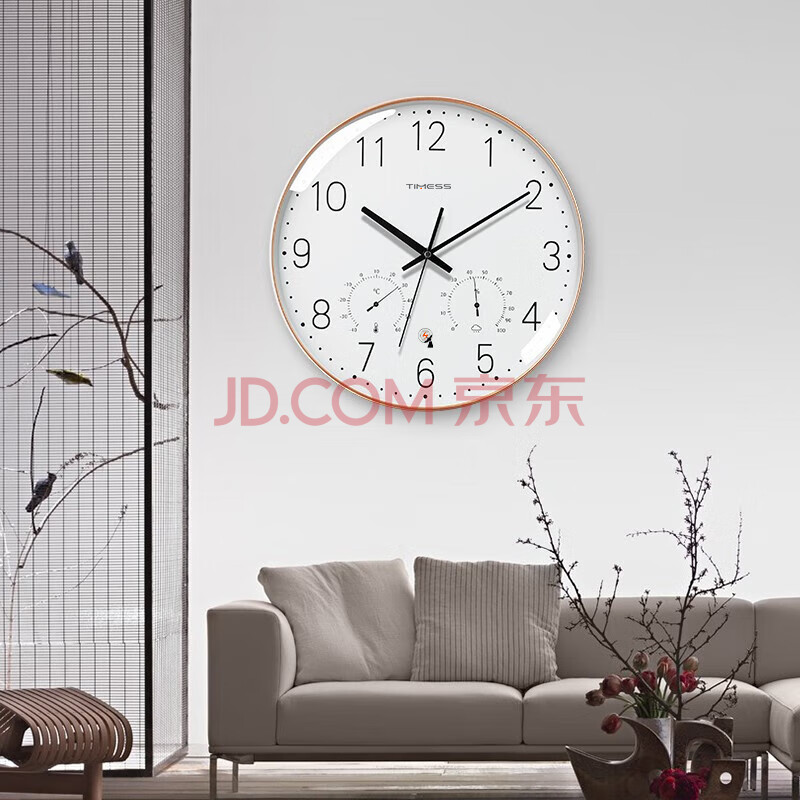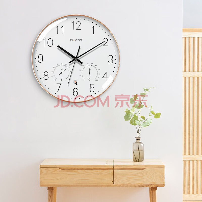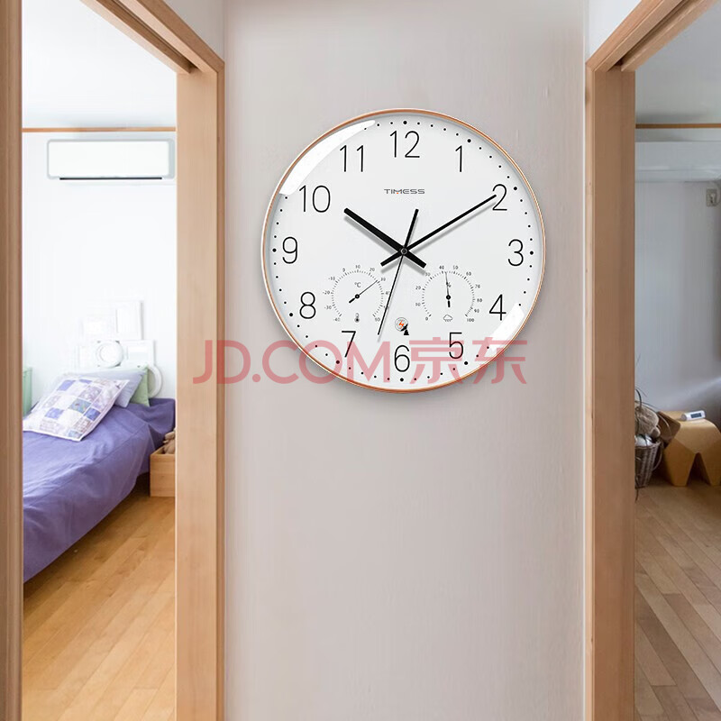 商品相册:Timess挂钟 电波钟客厅钟表温湿度计时尚简约石英钟表挂墙卧室时钟 36cm第1张/共4
