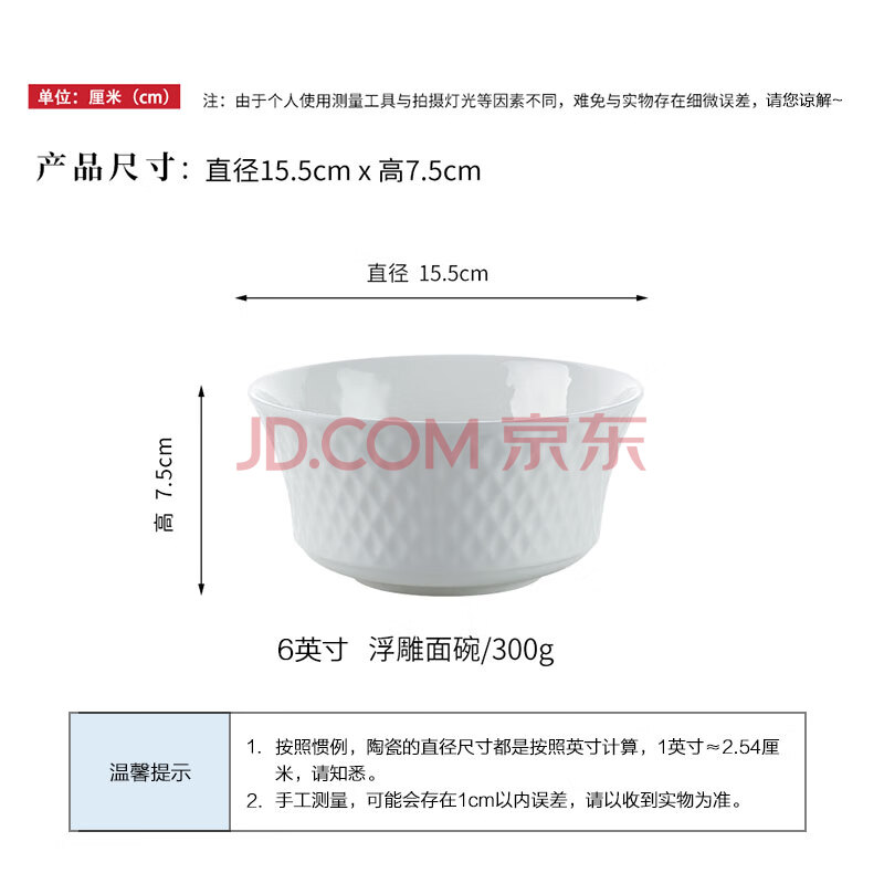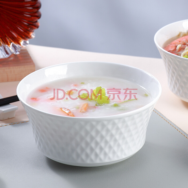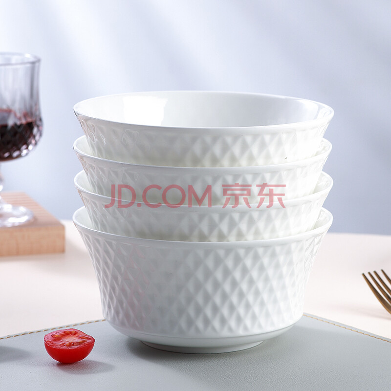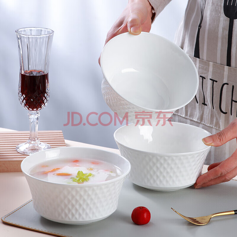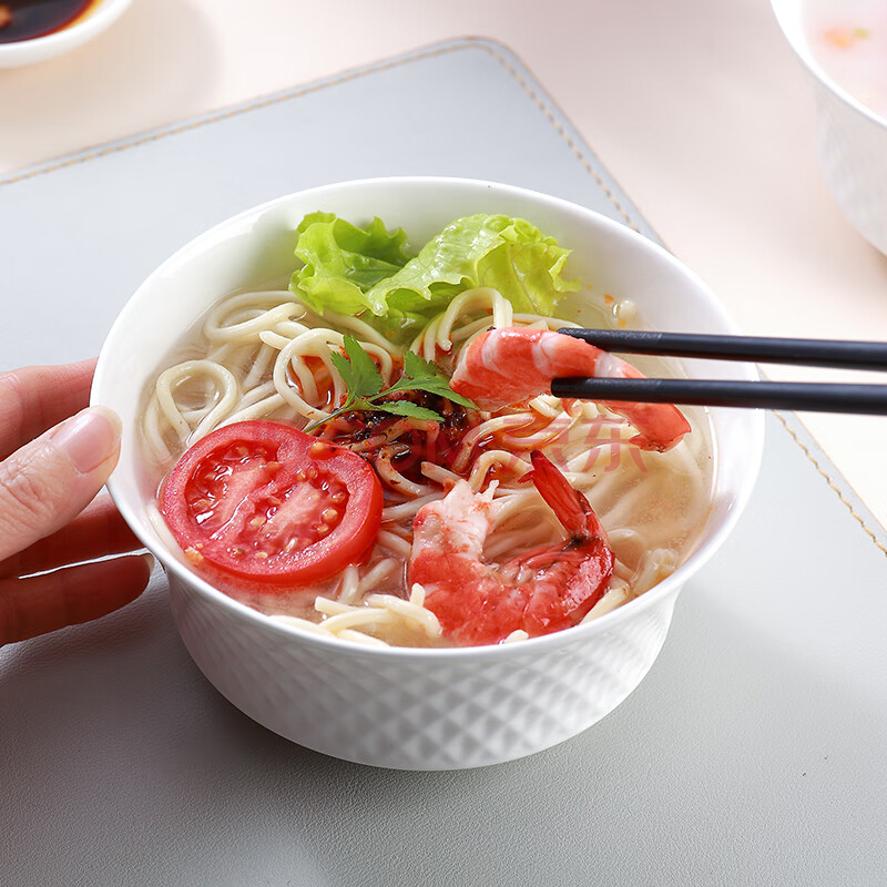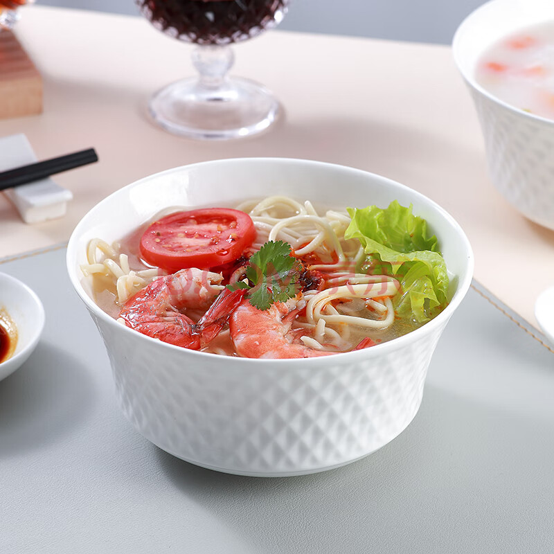 商品相册:斯凯绨(Sky Top)面碗陶瓷骨瓷汤碗纯白浮雕碗家用餐具6英寸璀璨4件套装第
