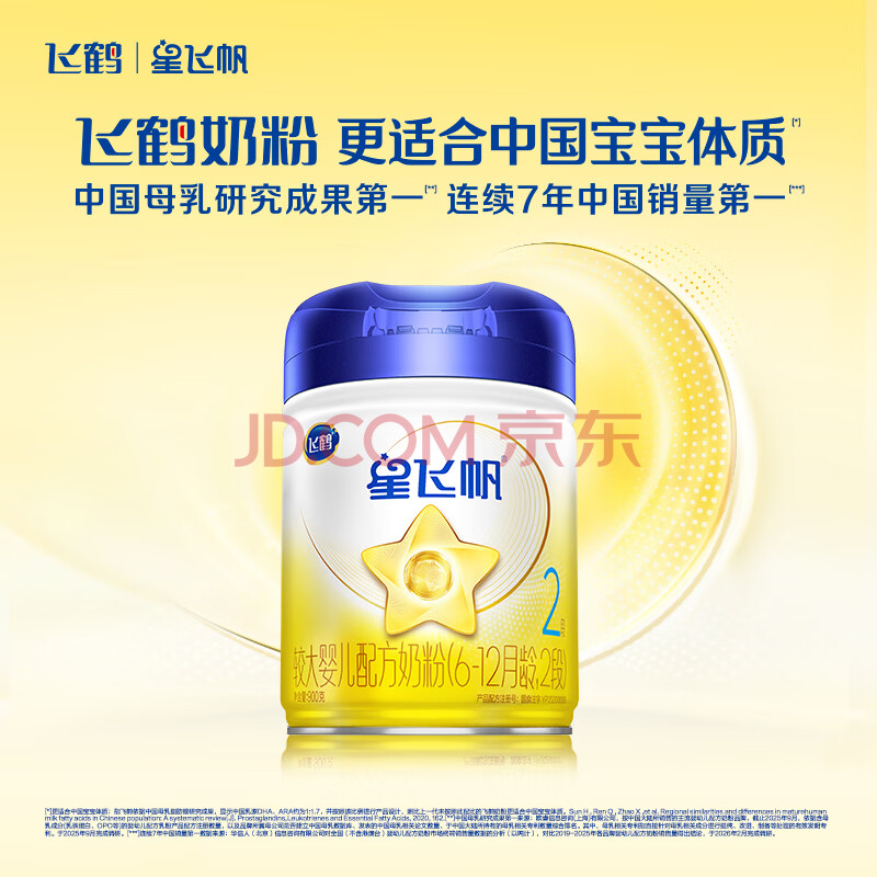 商品相册:飞鹤星飞帆婴幼儿配方奶粉2段(6-12月)900g*6罐专利OPO育儿补贴第1张/共1