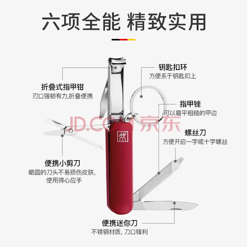 商品相册:双立人(ZWILLING)多功能指甲剪指甲钳折叠式指甲刀迷你水果刀钥匙扣德国品牌银色第