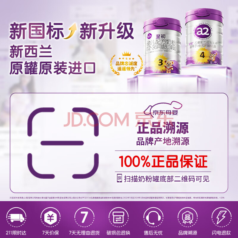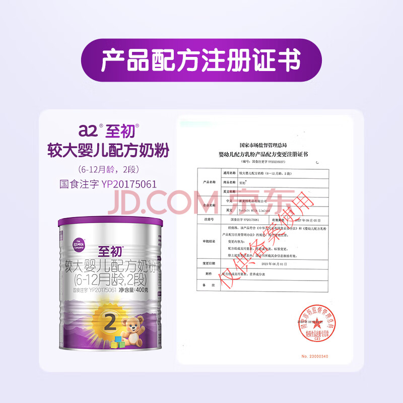 商品相册:a2至初 较大婴儿配方奶粉 2段(6-12月龄)400g*1罐 添加乳铁蛋白第
