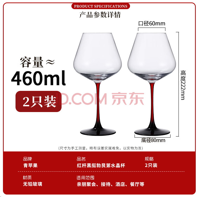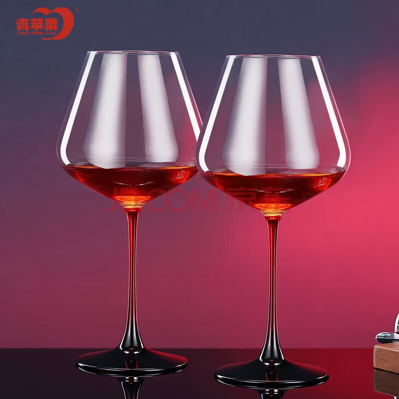 商品相册:青苹果水晶玻璃红领结红酒杯460ML两只 勃艮第葡萄酒高脚杯第1张/共6