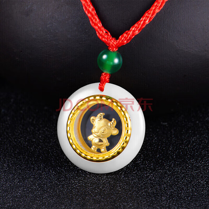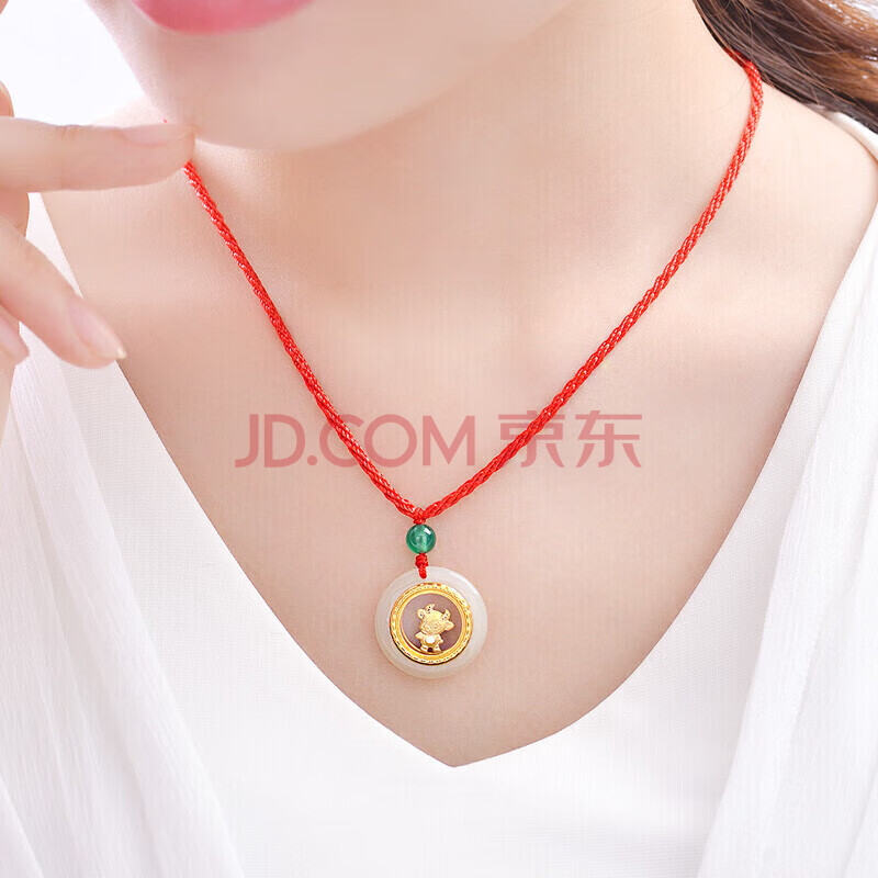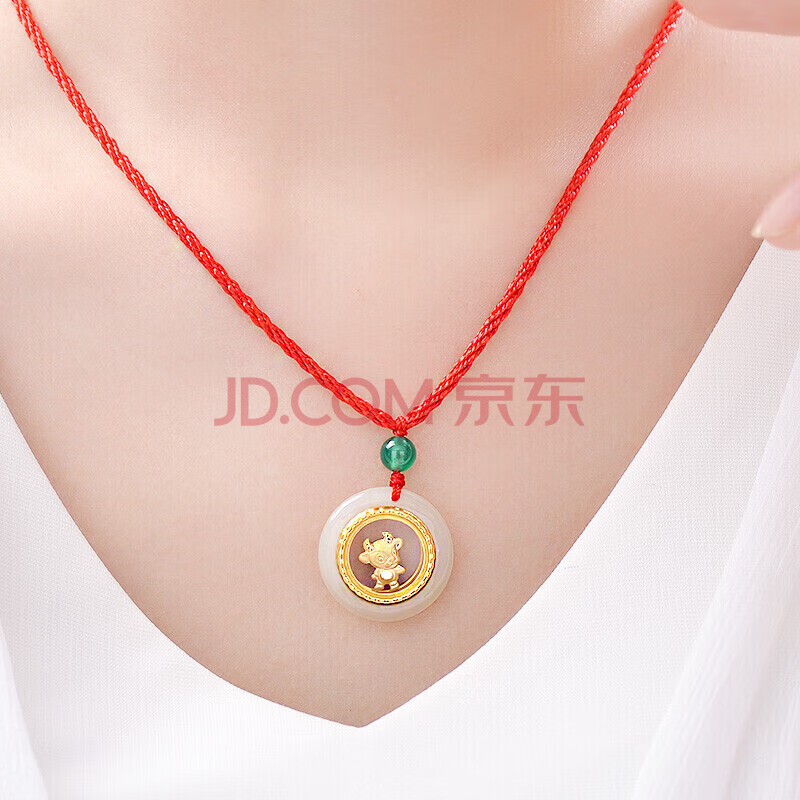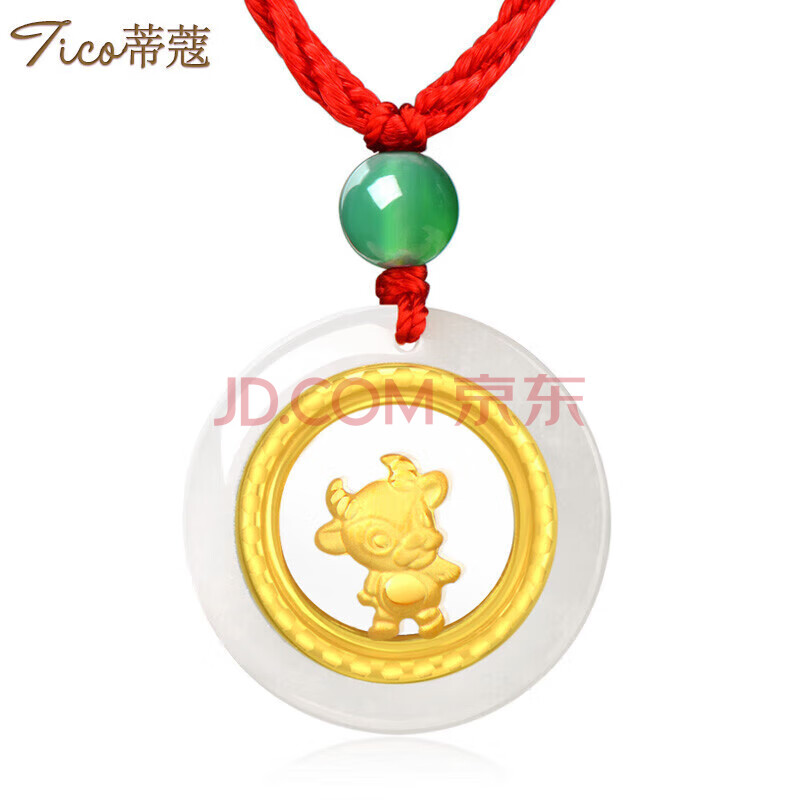 商品相册:蒂蔻(Tico)十二生肖牛金镶玉吊坠项链男女款和田玉平安扣小孩款宝宝周岁礼物第