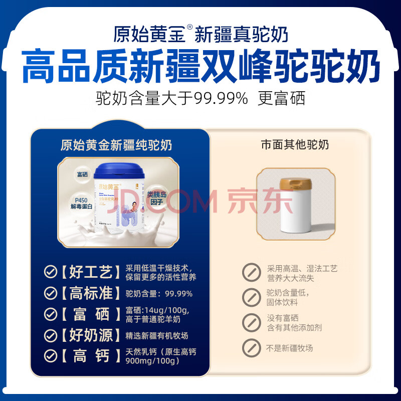 商品相册:原始黄金新疆特产骆驼奶粉300g*6罐中老年成人奶粉高钙正宗驼乳送礼礼盒第