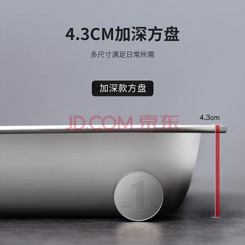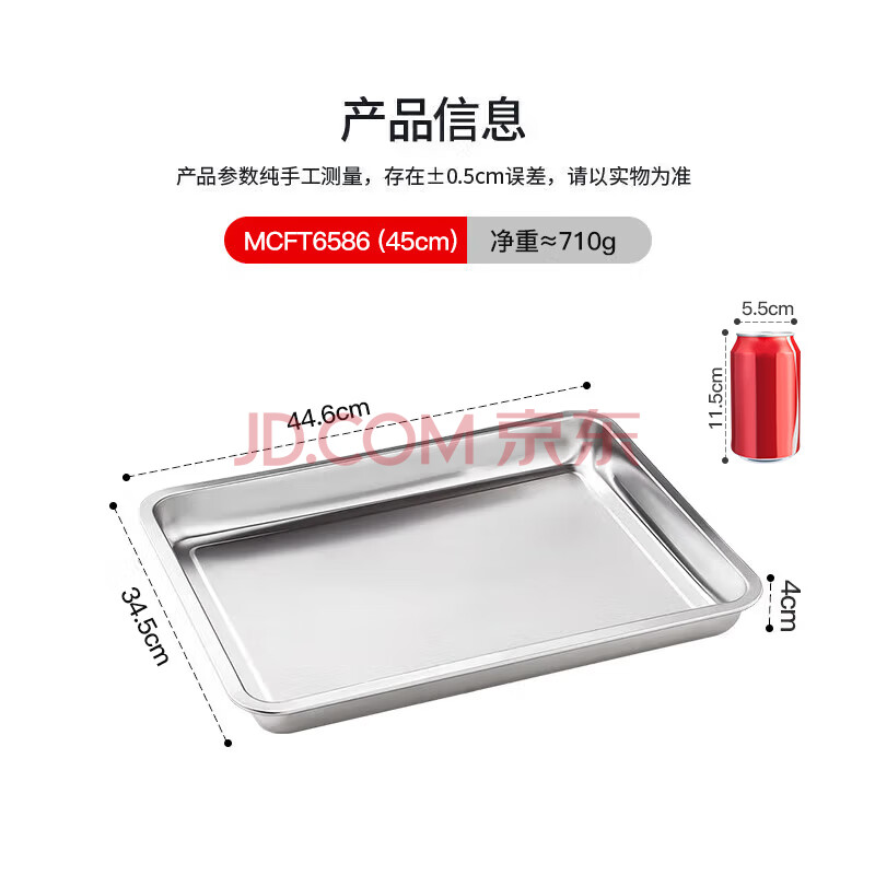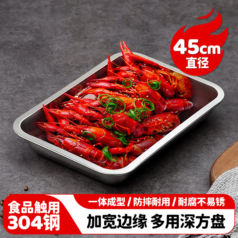 商品相册:美厨(maxcook)304不锈钢盘子方盘 加深方盘长方形餐盘 烧烤托盘45cm MCFT6586第