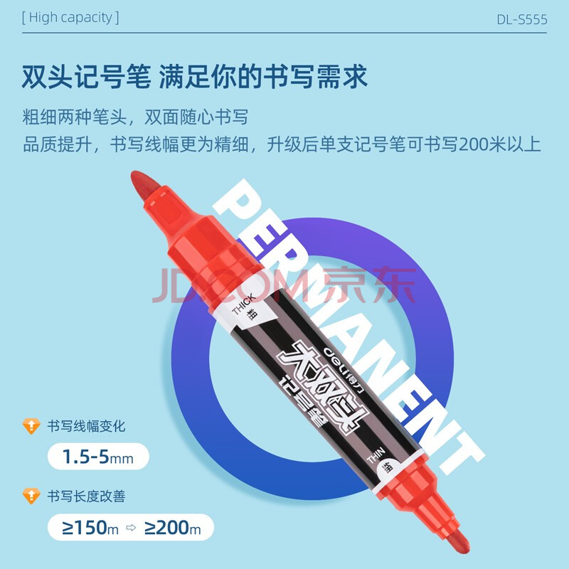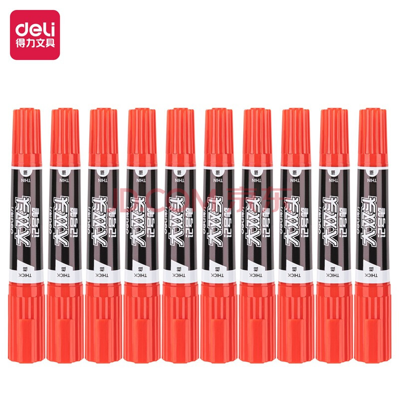 商品相册:【开学必备】得力(deli) 大双头多用记号笔签字笔 勾线笔会议笔马克笔 10支/盒 红色12盒装 S555第