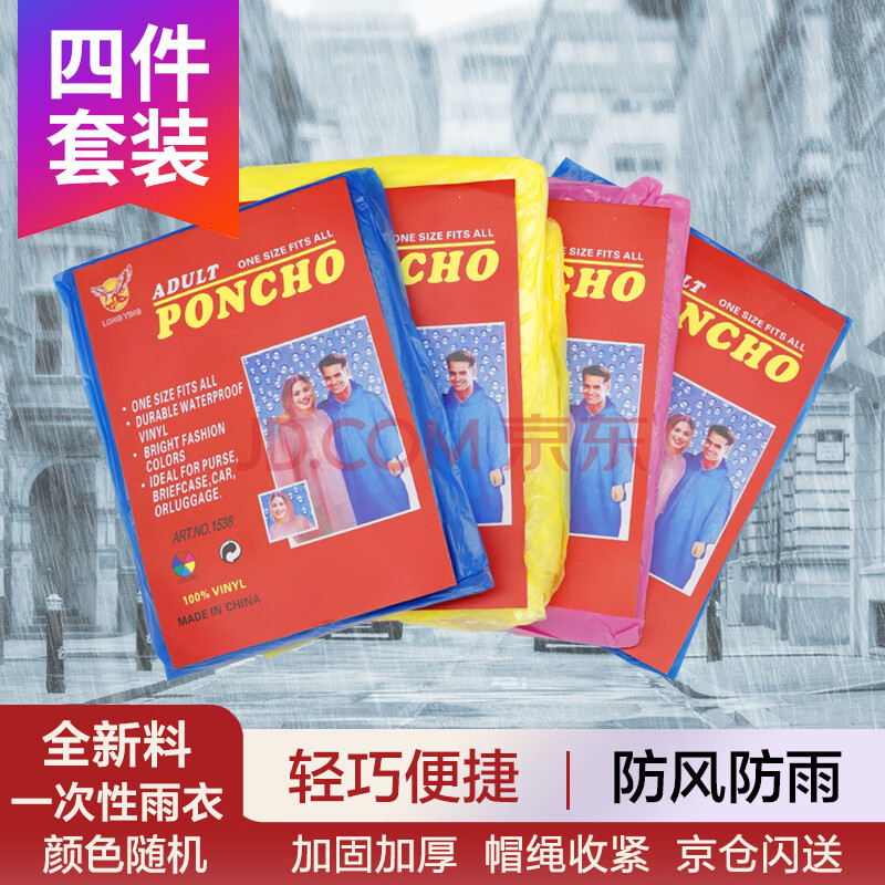 商品相册:腾驰 一次性雨衣加厚带帽绳雨披单人户外野营徒步雨披套装男女用共4件第