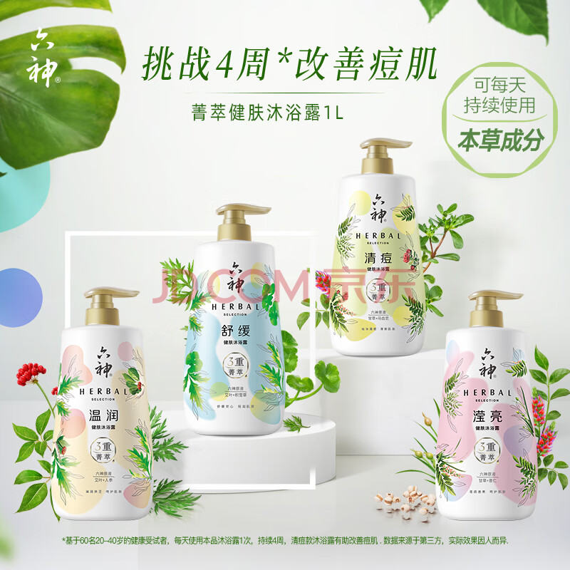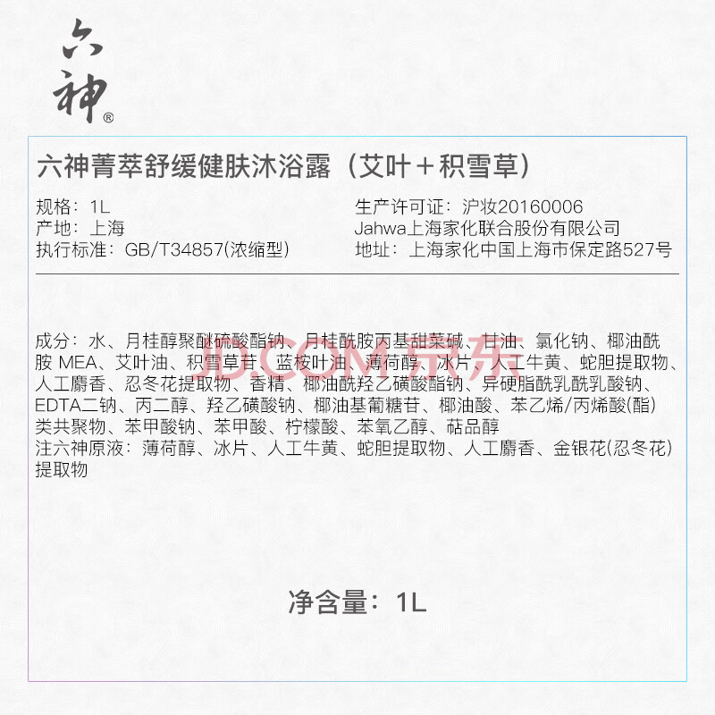 商品相册:六神【肖战同款】菁萃舒缓香氛沐浴露1L保湿舒缓积雪草+艾叶 男士女士第