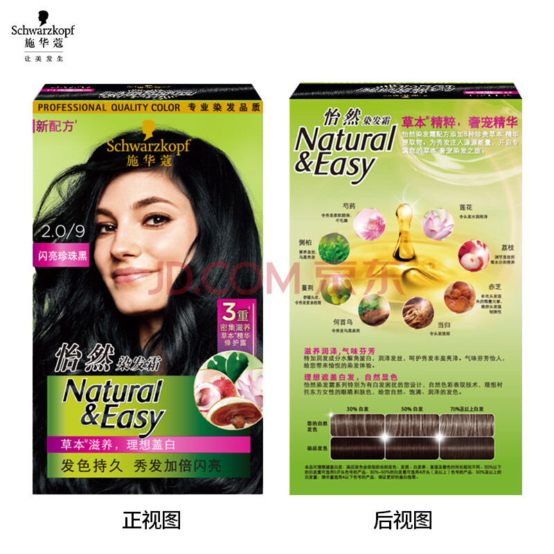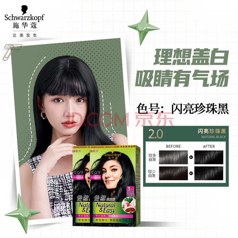 商品相册:施华蔻(Schwarzkopf)怡然染发霜2.0/9闪亮珍珠黑*2 染发膏盖白第
