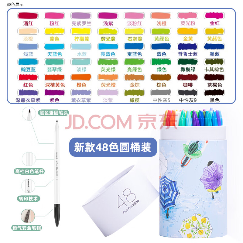 商品相册:慕那美(monami)新P3000纤维笔水性笔彩色中性笔套装水彩笔勾线笔手帐笔48色桶装04009Z48-T水彩笔第
