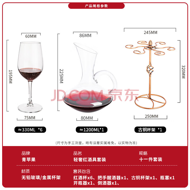 商品相册:青苹果 红酒杯套装葡萄酒杯6只+醒酒器+开瓶器+轻奢古典酒杯架第