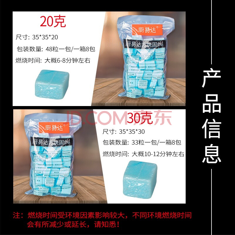 商品相册:厨易达 固体酒精块固态酒精蜡火锅炉干锅专用耐烧燃料膏20克X384粒(1箱)第