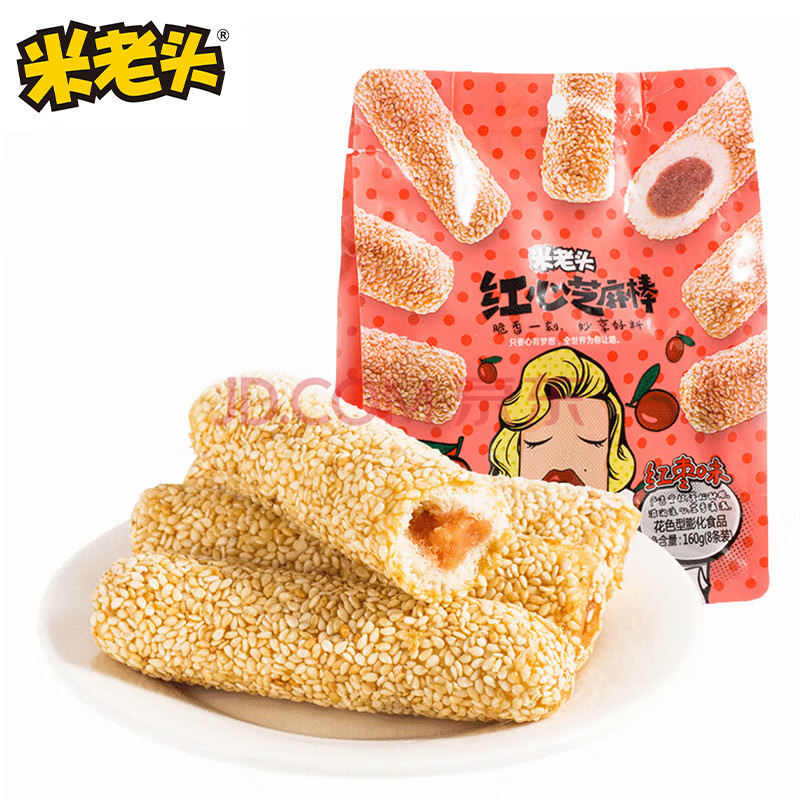 商品相册:米老头 芝麻棒红枣味160g 芝麻夹心休闲膨化零食怀旧老式小吃解馋小零食第