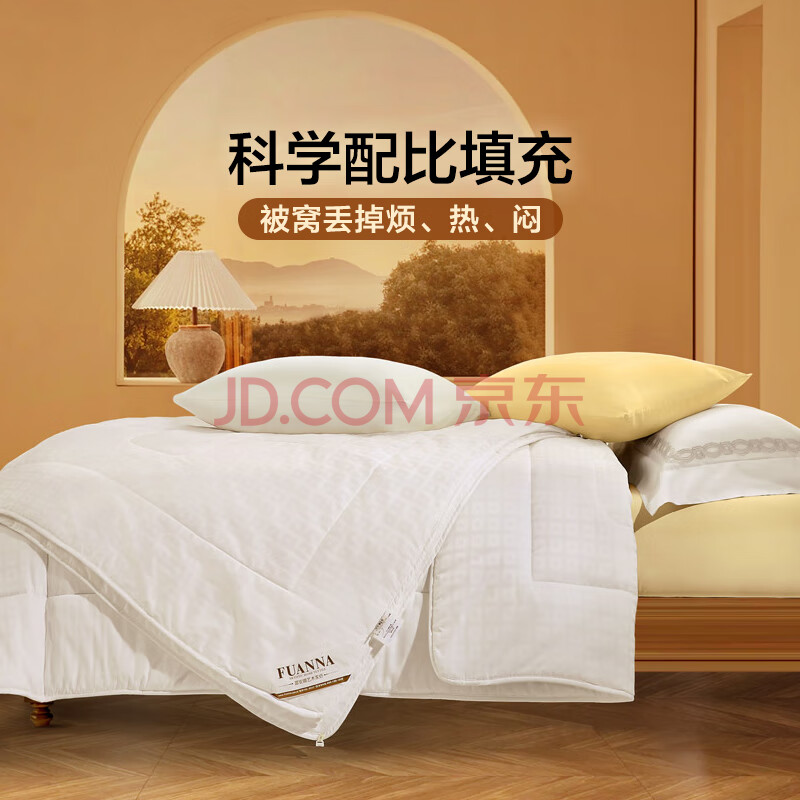 商品相册:富安娜 舒润纤维被 纯棉面料 二合一子母被 四季被 11斤 230*229cm 白色第1张/共4