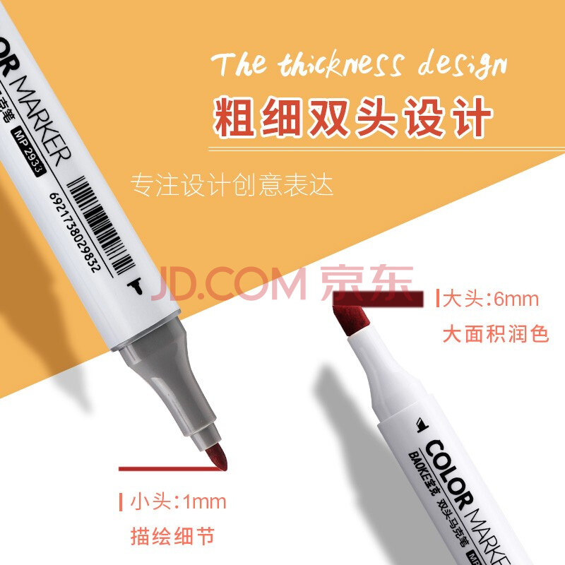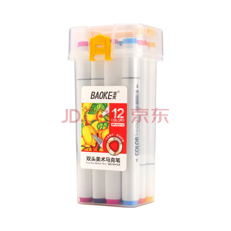 商品相册:宝克(BAOKE)MP2933-12双头马克笔三角笔杆酒精油性学生美术绘画儿童涂鸦设计笔12色装水彩笔美育第